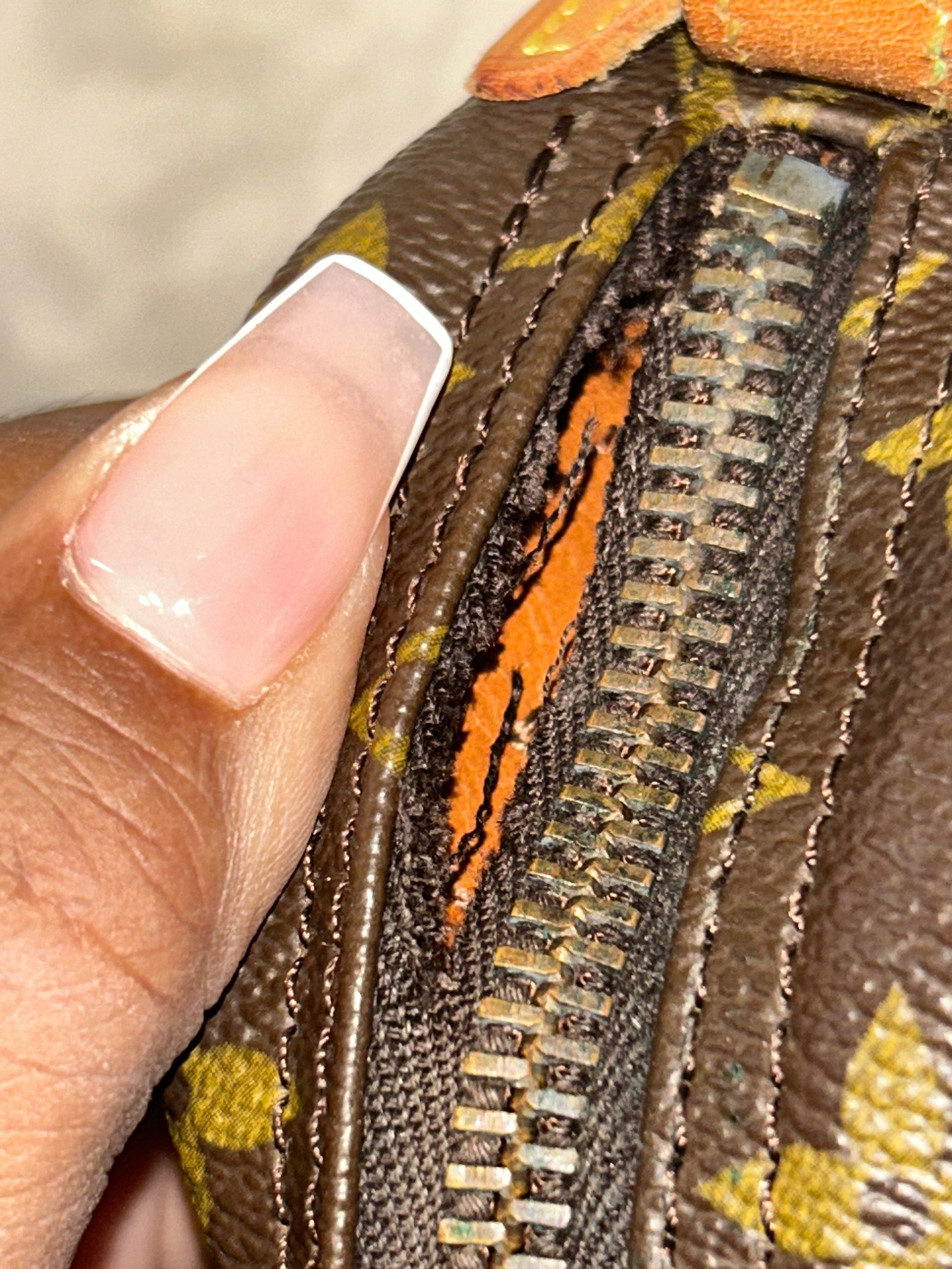 🤩Has a tear close to the zipper track BUT zipper still moves fluidly (please see pictures)
